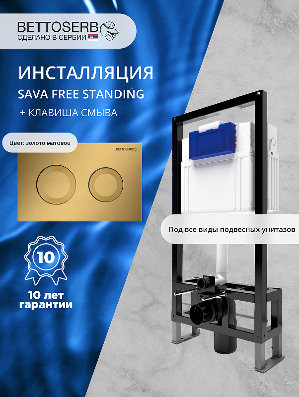 • Инсталляция Bettoserb Sava Free Standing SFS40006440 для унитаза с клавишей смыва Cool цвет Золото матовый