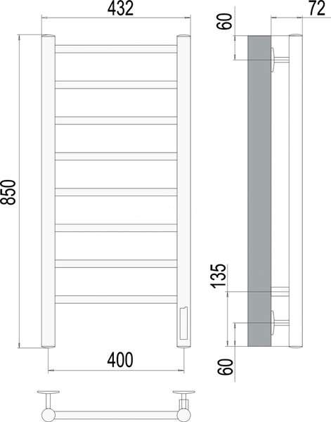 • Полотенцесушитель электрический Аврора П8 400х850, ширина 40 см, высота 85 см, 4670078531162